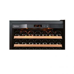 NEW from the innovative minds of EuroCave comes the Pure Line of Wine Cellars. EuroCave Pure re-creates the natural deep French wine cellar climate ensuring consistent optimum storage temperature and relative humidity levels. It also boasts an energy efficiency rating of A+ making it a very “green” wine storage option. The hygrometer provides an LCD display to advise of humidity range while the built-in alarm alerts when the humidity level falls too low. With its soft LED display lighting and full glass door features, the Pure offers beauty and elegance while keeping your most prized wines safe.